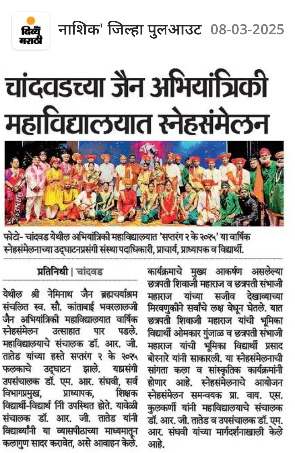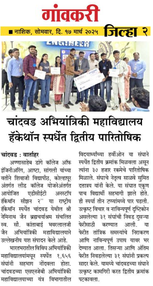 Chandwad Abhiyantrikichya Students Chapterla Rashtriya Puraskar Pradan News 18/01/2025