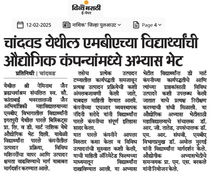 MBA Chya Vidyarthyanchi Audyogik Companyanmadhye Bhet News 12/02/2025