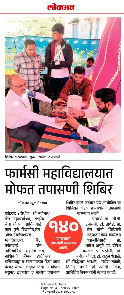 Pharmacy Mahavidyalat Mofat Tapasni Shibir News 07/02/2025